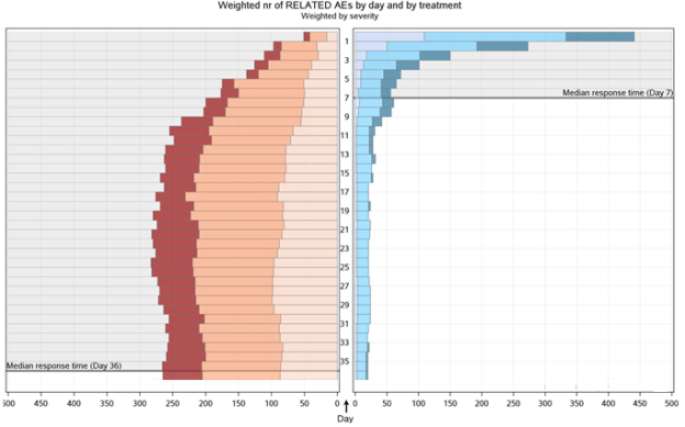 Current methods provide a limited view of the patient experience, where the safety burden of treatment is only assessed as an overall summary over the study period. The collective burden of therapy on the individual or treatment group is not evaluated.